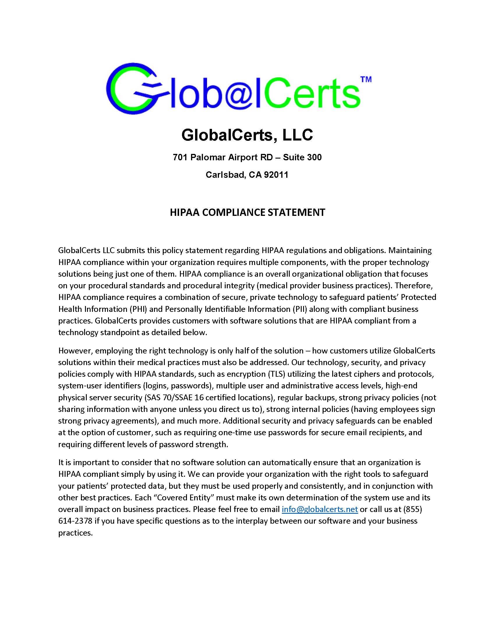 GlobalCerts-HIPAA-Compliance-Statement